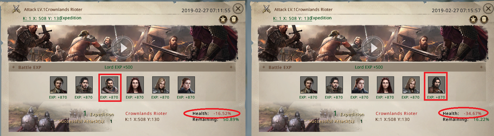 Po skončení každého útoku nejen který provedete vy ale i když útok jede na vás tak rekapitulace boje vám vždy přijde do pošty kde se můžete podívat jak jste dopadli se svým vojskem.Health-16.52%-Health-34.67% Take počítejte že pokaždé bitvě se Commander zvýší jejich EXP:+500.